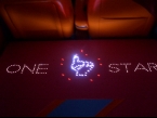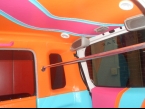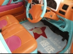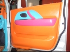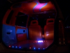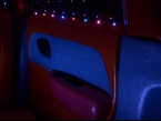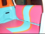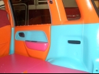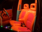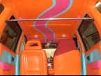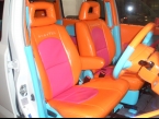 ■内装■総張り替え/エナメルオレンジ×水色×ピンク、Aピラーメーター施工、LED電飾加工、スポットハロゲンライト、リアリムジン加工、ワンスターロゴフラッシュリレー加工、ONESTARマット。 |
